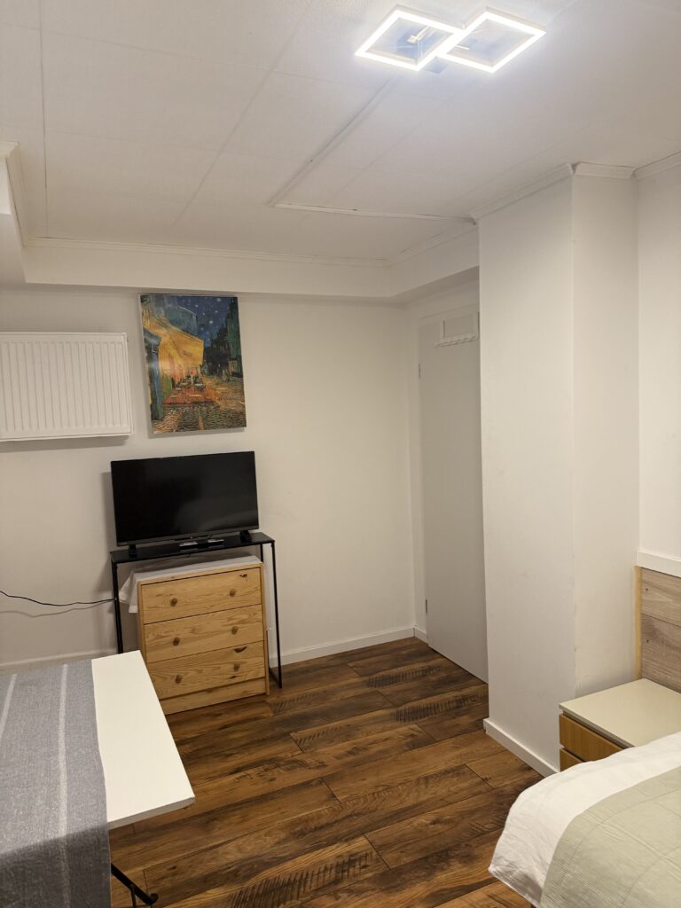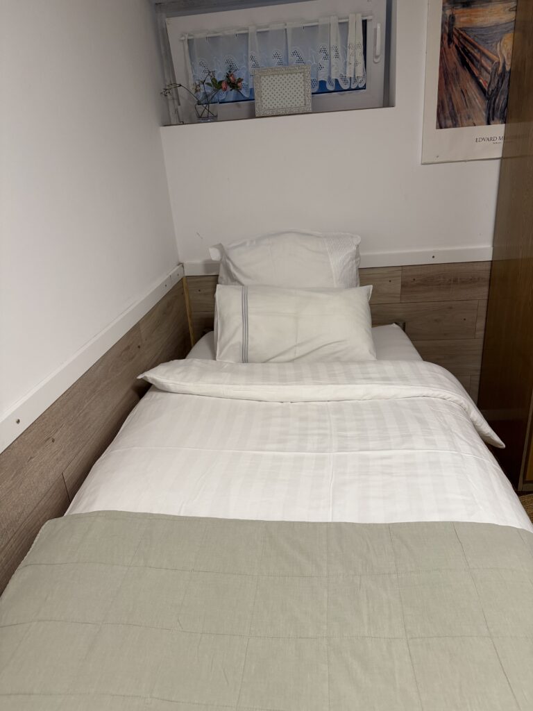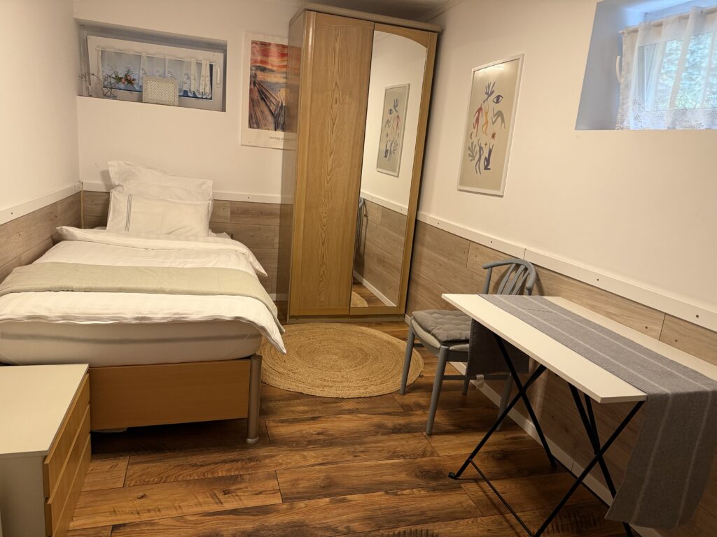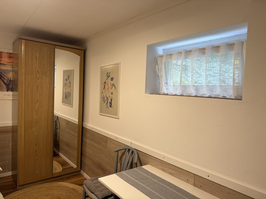 A1-2 is a private room within the garden-level flat. The kitchen and bathroom are shared only with the neighbouring room (A1-1). It offers direct access to the terrace with river views.
